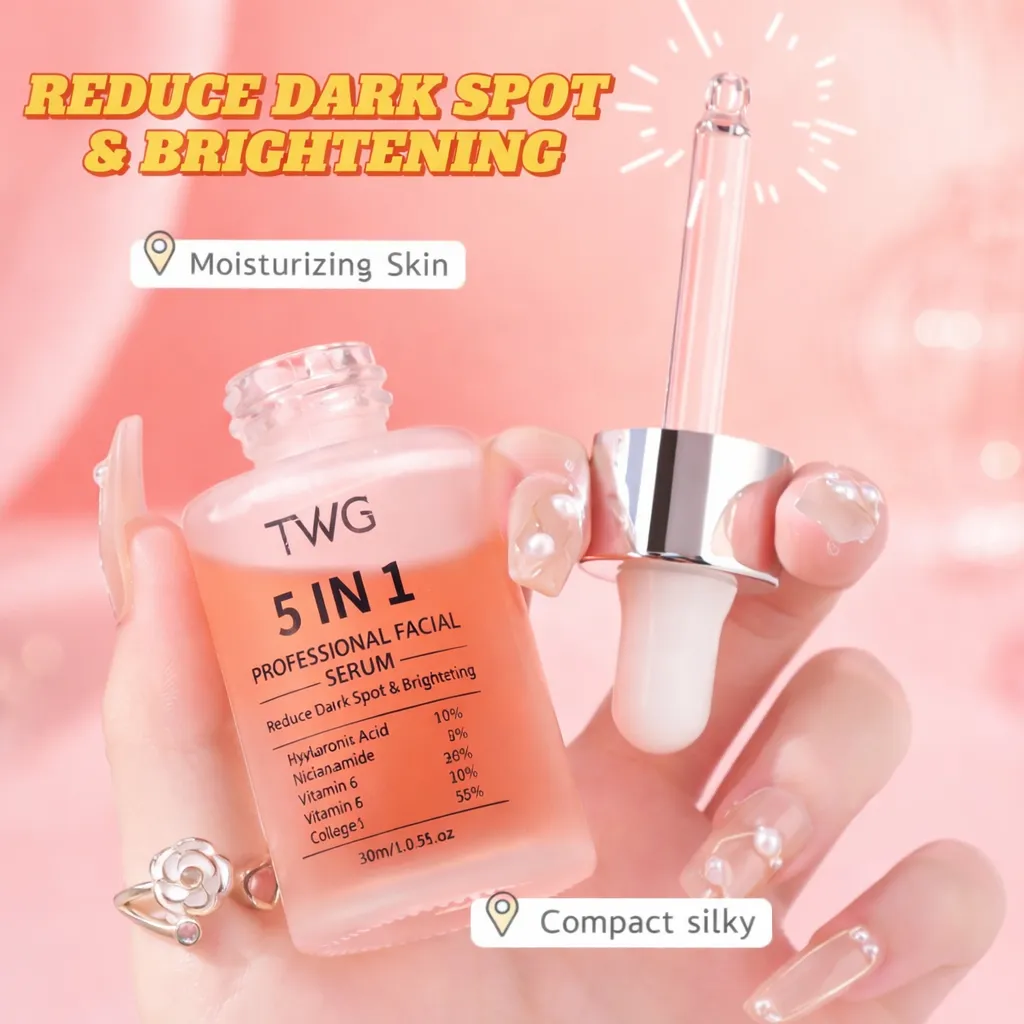 This is not your regular face serum. The TWG 5-in-1 Professional Facial Serum is a powerful, professionally formulated serum that works both on the outside (your skin) and on the inside (your body’s cellular health).